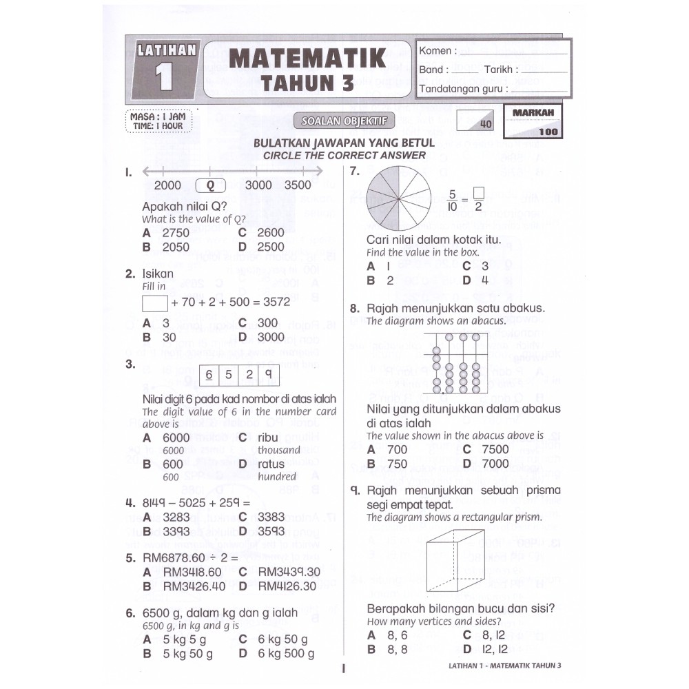 Soalan Matematik Tahun 3 Kertas 2 / Ujian Matematik Tahun 3 Kertas 2
